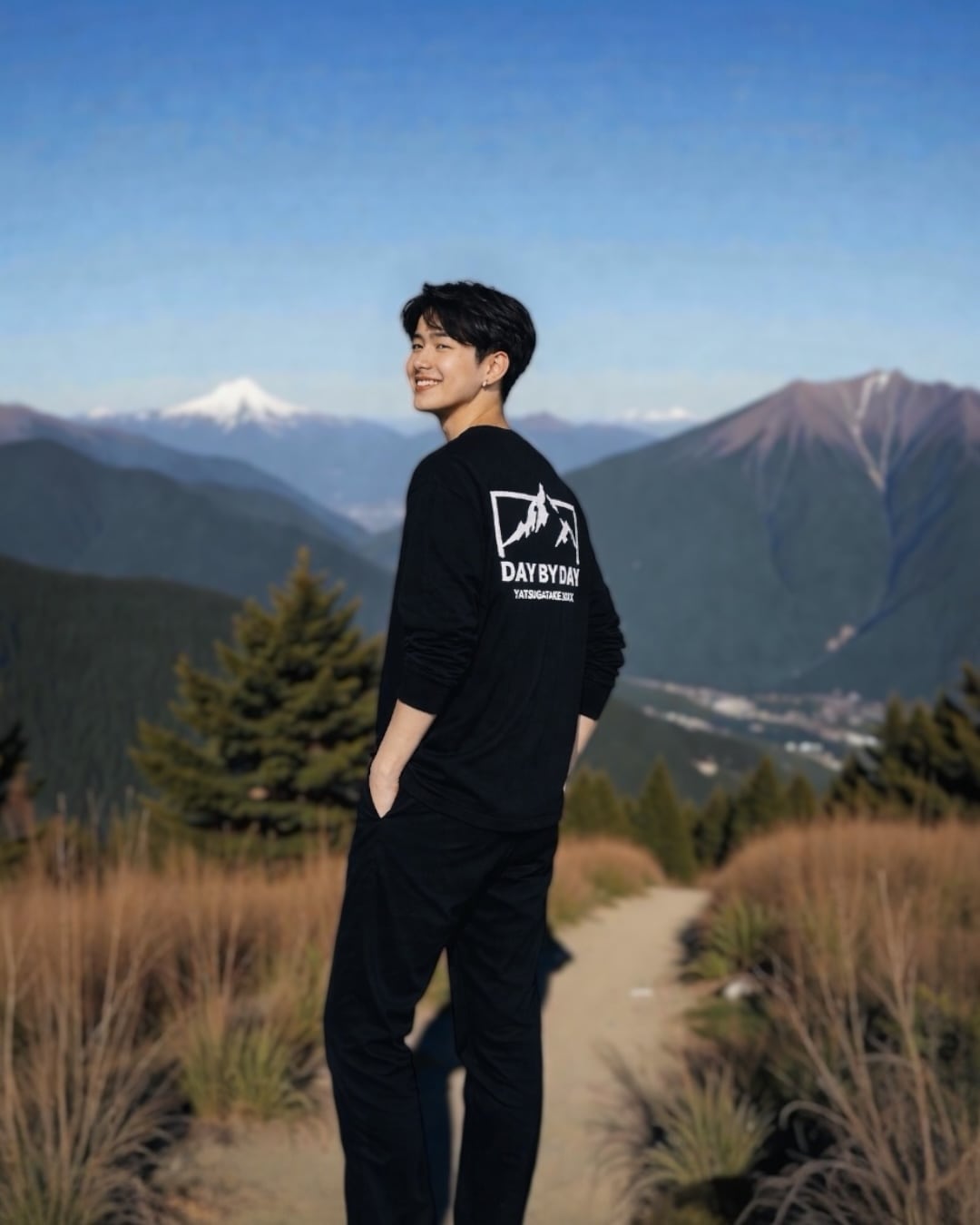 背中に描いたのは、八ヶ岳の稜線。